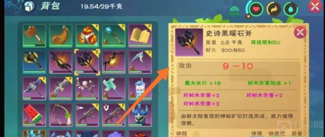 2、然后装备斧头。