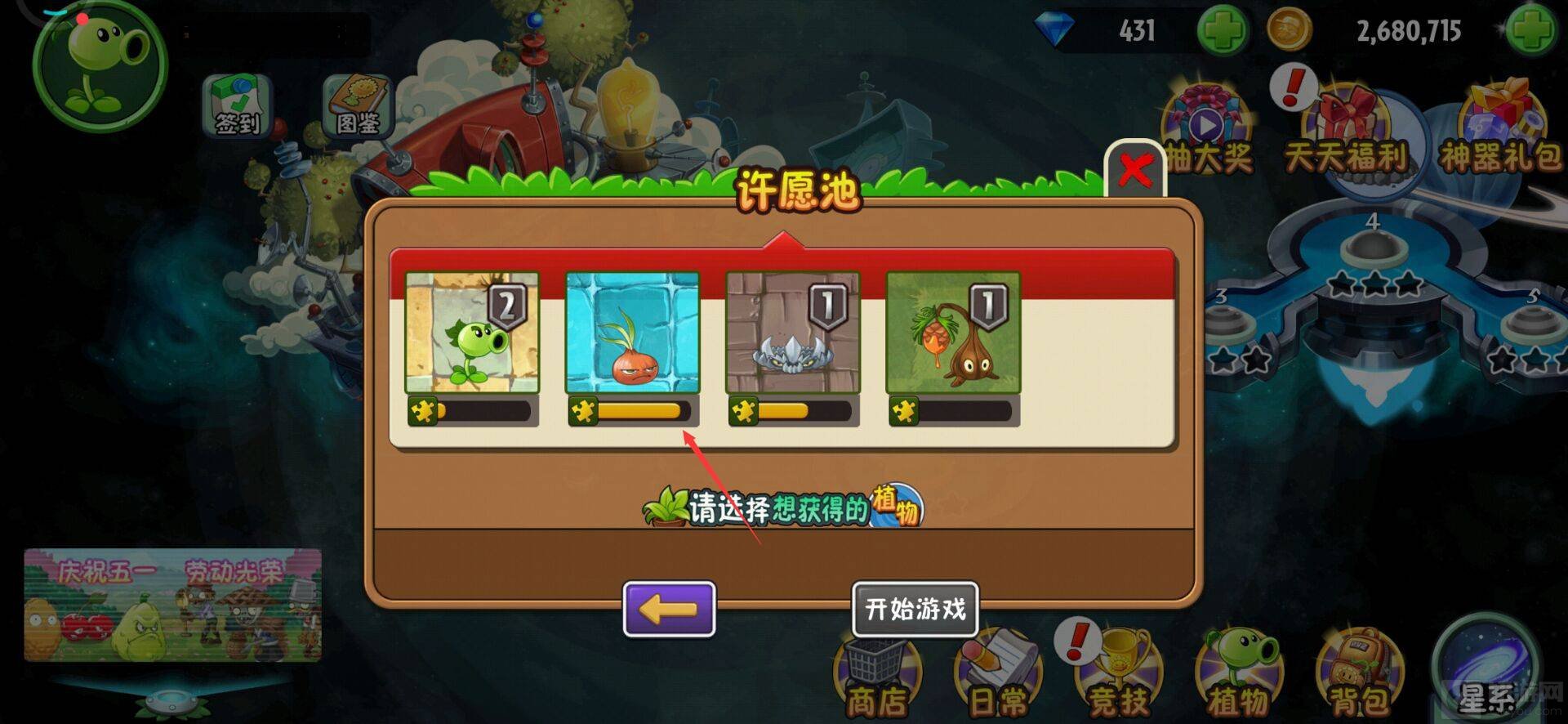 2、另外一种就是通过挑战里面的许愿池获得植物碎片来兑换它。