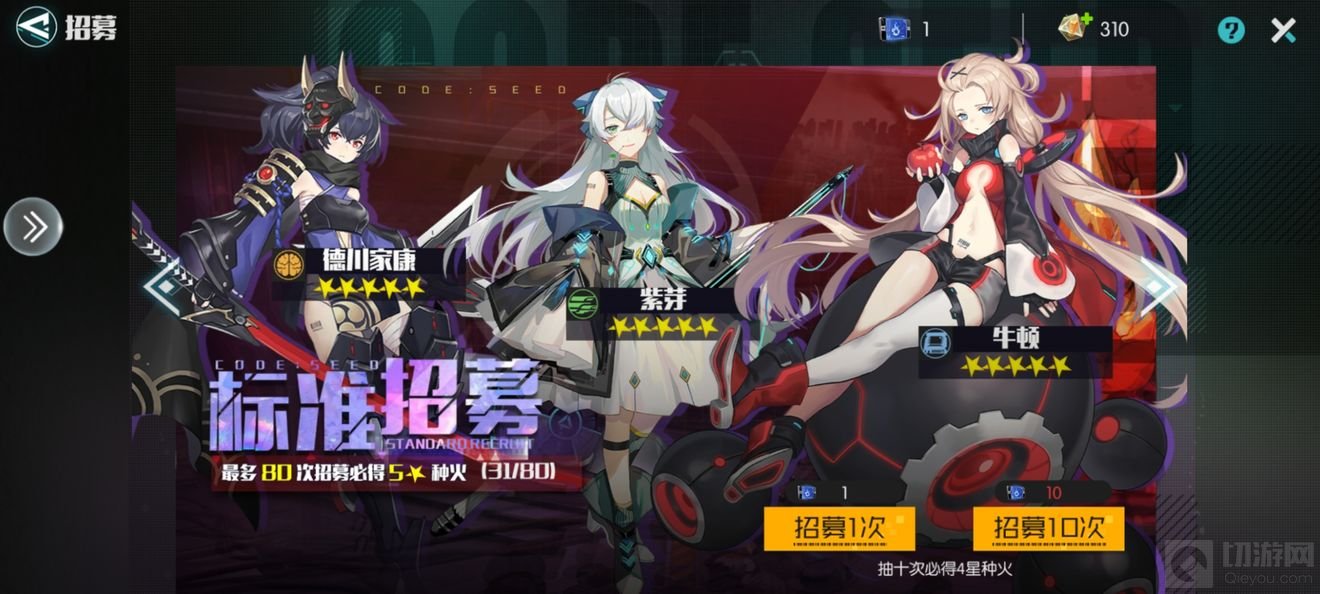 4、限时招募,特定的种火角色抽中概率提高。可使用电子名档、煋砾,不能使用电子名录。