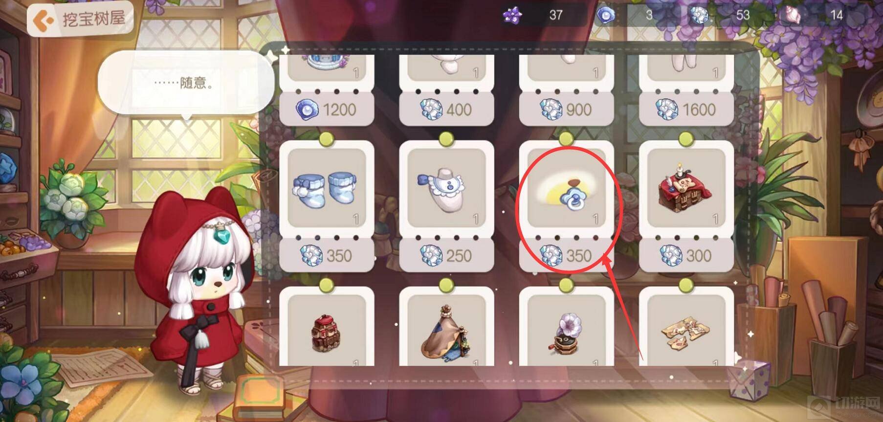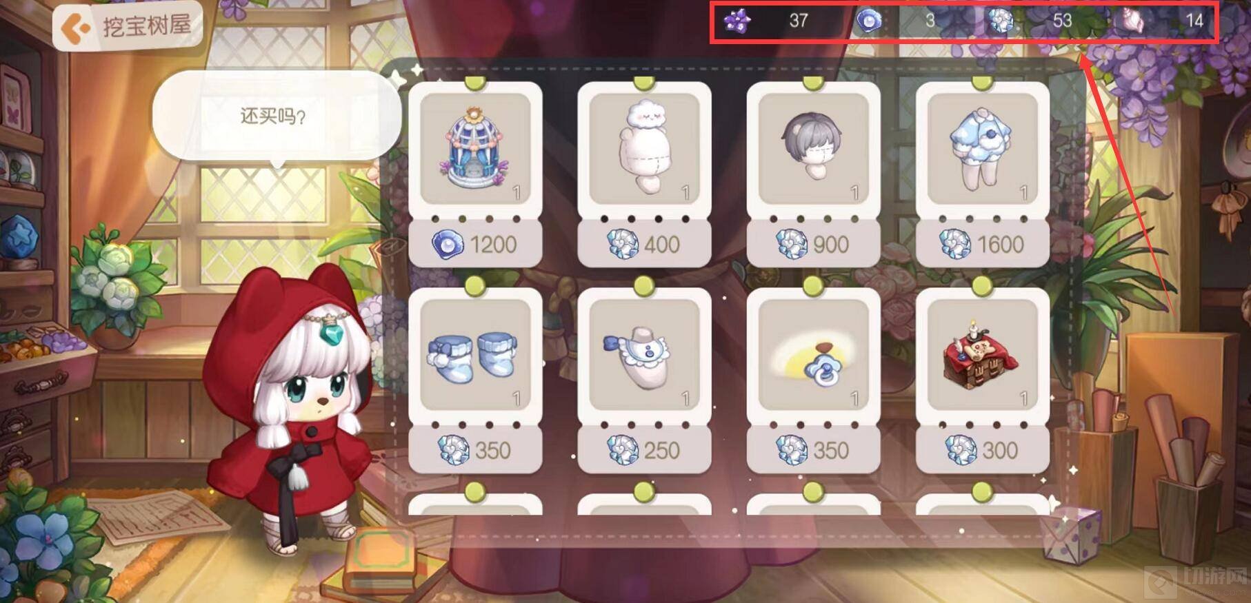 3、在挖宝树屋中,可以使用失落水晶、尘世贝、遗迹石、月白螺兑换商品。