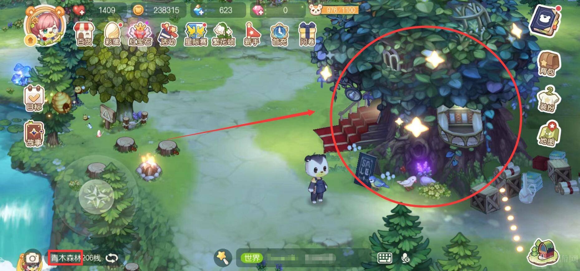 2、挖宝树屋可通过点击地图上的青木森林进入。