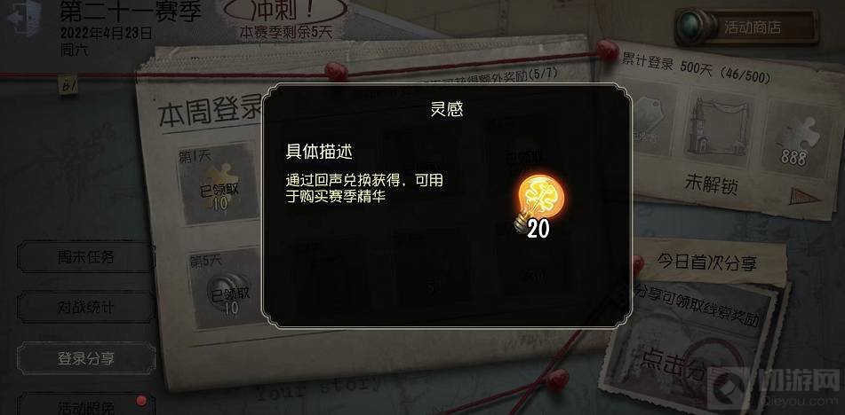 第五人格灯泡怎么获得?在游戏中有部分玩家对此还不太了解。接下来让为大家介绍一下吧。 第五人格灯泡获得方法 灯泡指的是灵感,因为其外形图标长得像灯泡,所以就有了这个称号,可以通过回声兑换或者每周登录