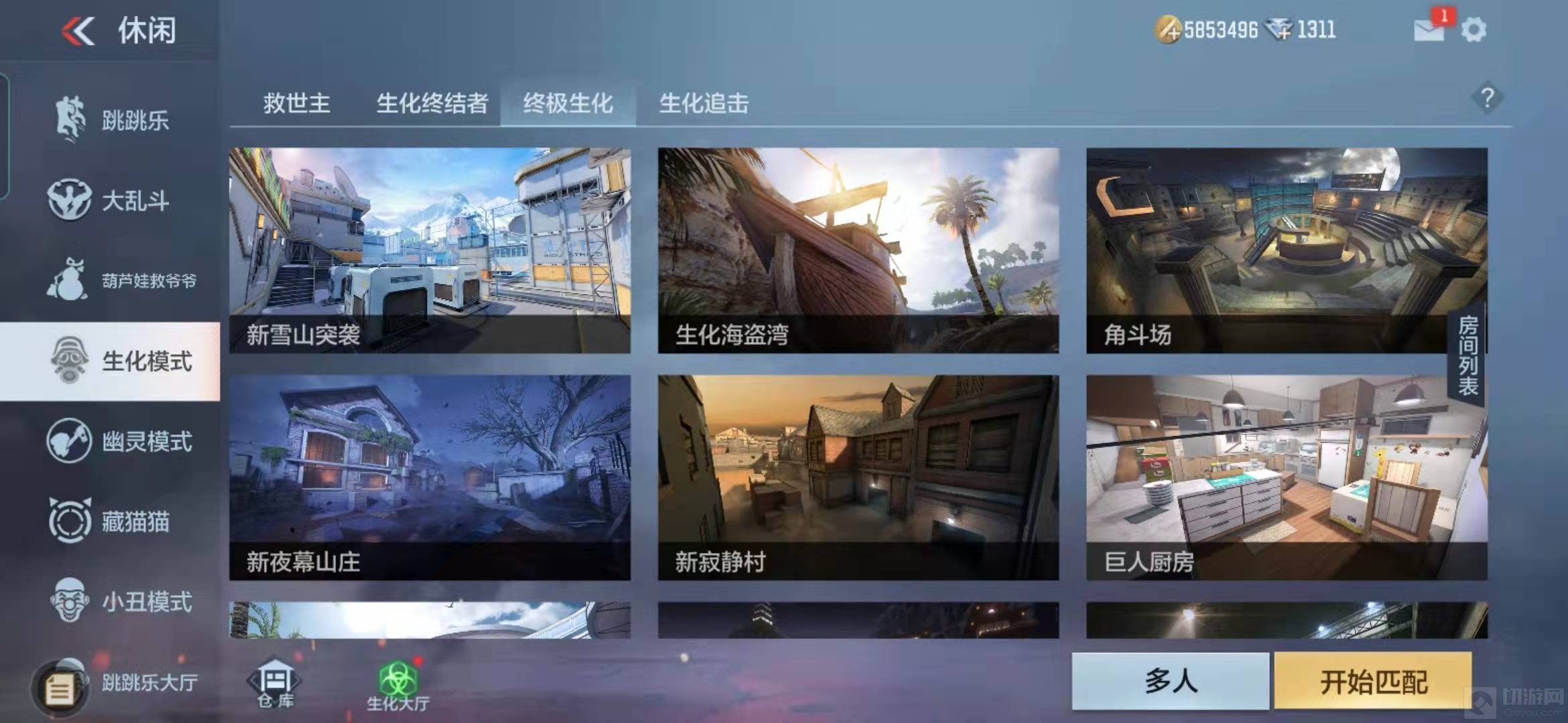 1、首先需要通过游戏大厅进入‘生化大厅’界面,选择‘终极生化’模式;