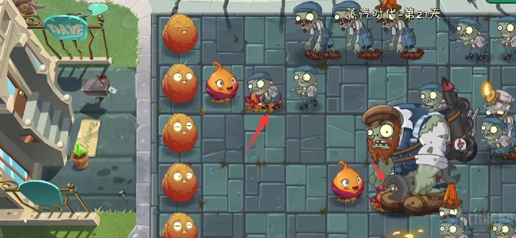 1、魔甘组合使用方法:首先,甜菜带上装扮,在它的前面种上逃脱树根,这里要注意不要让煤矿车僵尸破坏甜菜并留下煤炭。