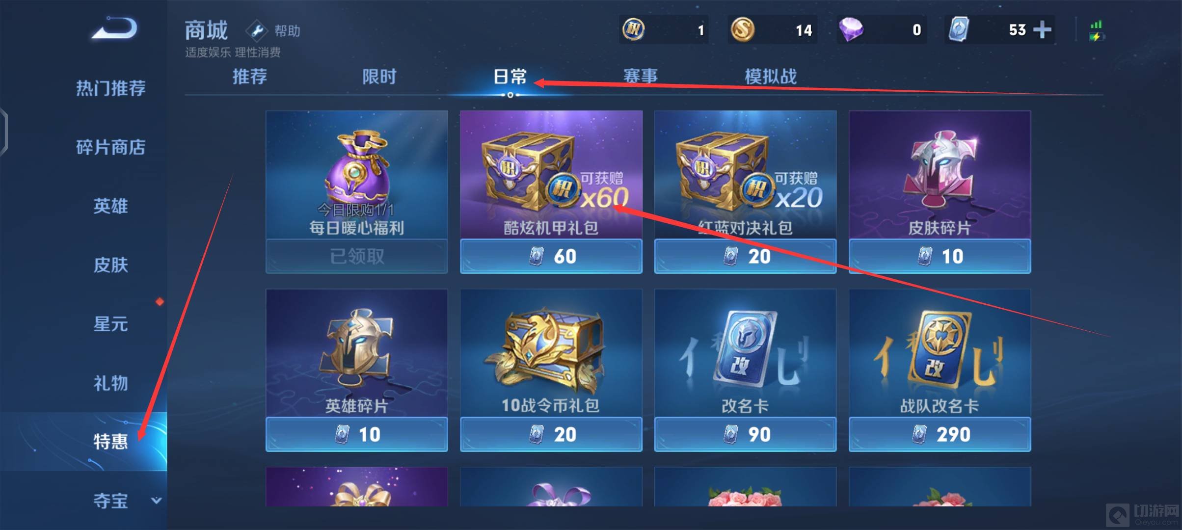 3、在商城中,购买礼包也可以获取荣耀积分。