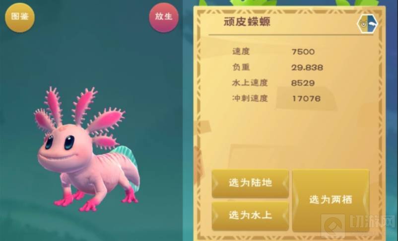 1、一共有两种顽皮蝾螈,一个大一个小,小顽皮就是顽皮蝾螈,外形是块头较小,粉丝的纹身蓝色的尾巴。水上,陆地上均可使用,是一款非常实用的坐骑。