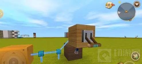 1.首先任意地放一个方块,在方块的前面放一个电能的产生器。