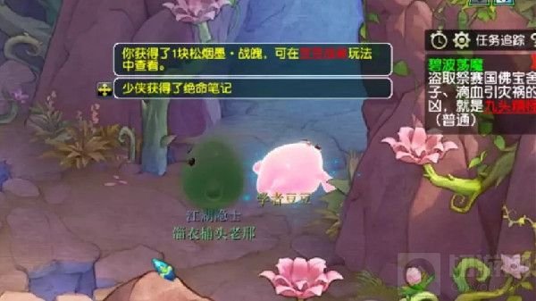 6、玩家直接前往下一个任务直接寻找学者豆豆,位置137.110方向,与它对话就能将绝命笔记拿到手。
