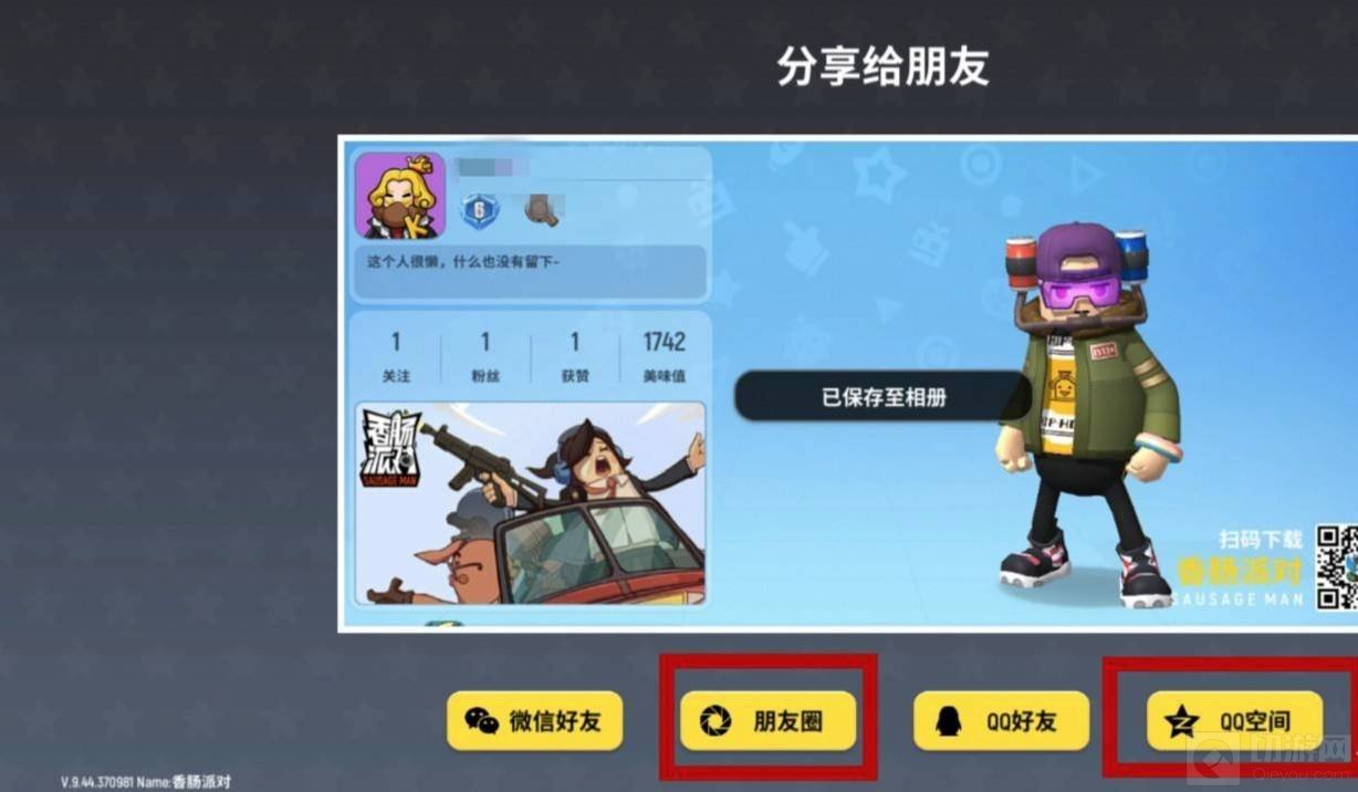 3、然后点击右下角的分享,选择分享到朋友圈或者qq空间,因为分享给好友是没有用的。