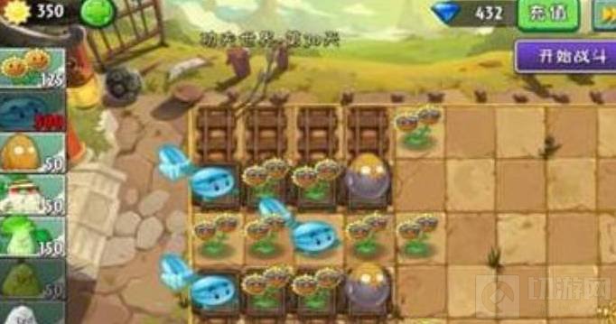 1、第一条血量条只出普通怪,数量较少。这段时间是积攒阳光的黄金时间,所以多种双头向日葵。