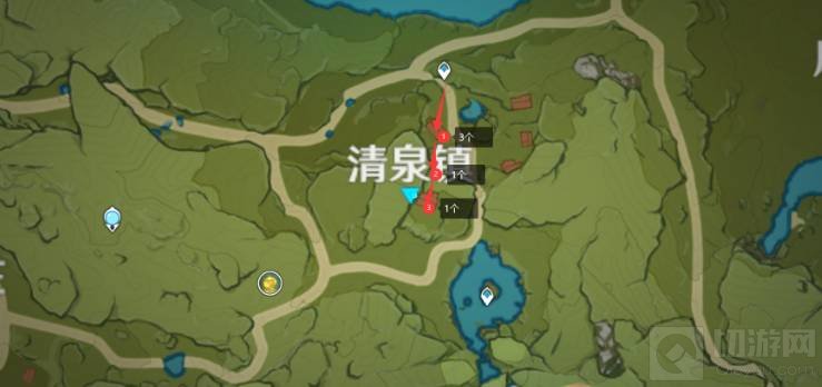 2、清泉镇,共计17个慕风蘑菇,最优路线可获得15个。