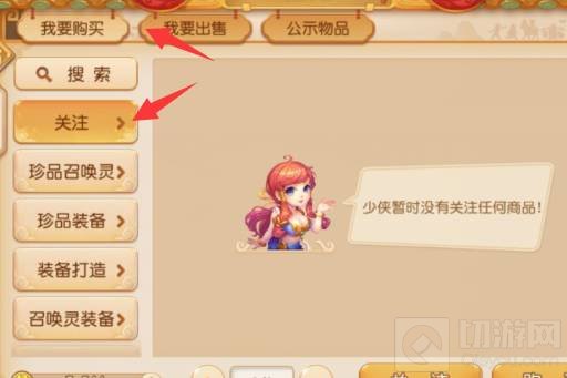 1、首先需要关注要买的装备,然后回到“关注—我要购买”列表中。