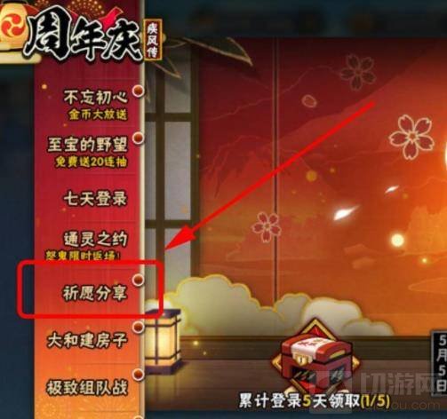 火影忍者手游祈愿分享在哪?在游戏中有部分玩家对此还不太了解。接下来让为大家介绍一下吧。 火影忍者手游祈愿分享位置: 1、打开火影忍者手游,进入‘周年庆’活动界面。 2、在&ls