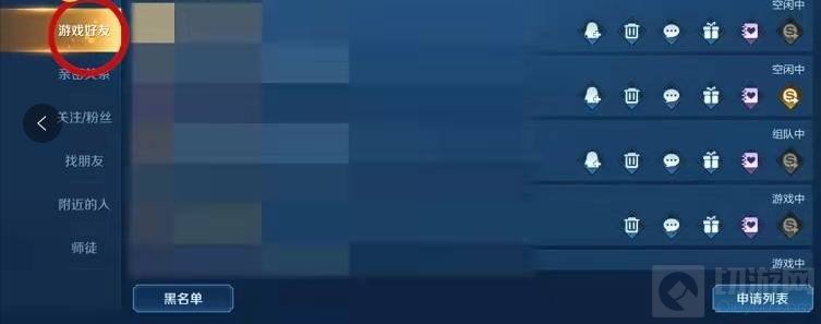 2.然后进入页面,点击左侧栏目中的“游戏好友”;