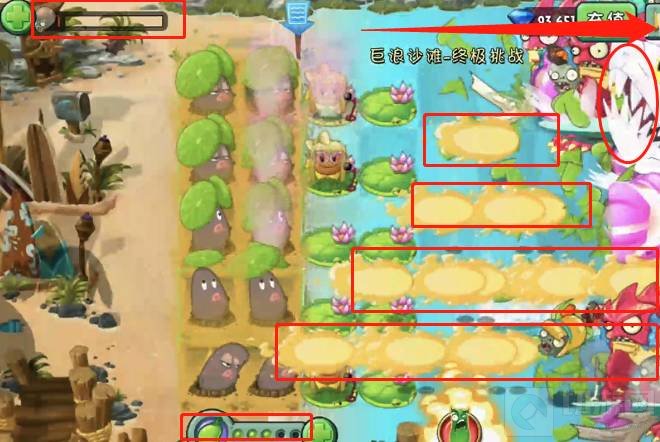 2.并开局放置两列第五个植物以及5个向日葵,最重要一点在那两列植物身上每个放上第三个植物,可以让装备上的植物给予豆子时攻会把放置该植物的技能都触发,并且攻击伤害很高。