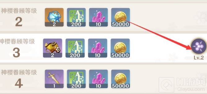 2、和神樱交互对话后,向神樱缴纳雷之印来给升级神樱眷顾。而雷之印可通过开启稻妻区域内的宝箱、收集雷神瞳给神像升级等方式获得。