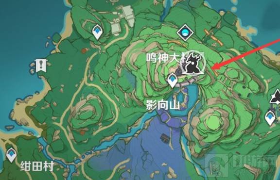 1、首先打开并进入游戏,打开地图,前往鸣神大社的神樱处提升等级。