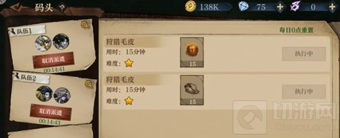 2、码头的每日任务是有限的,每日零点刷新,码头任务最多可以同时派遣3支队伍进行。