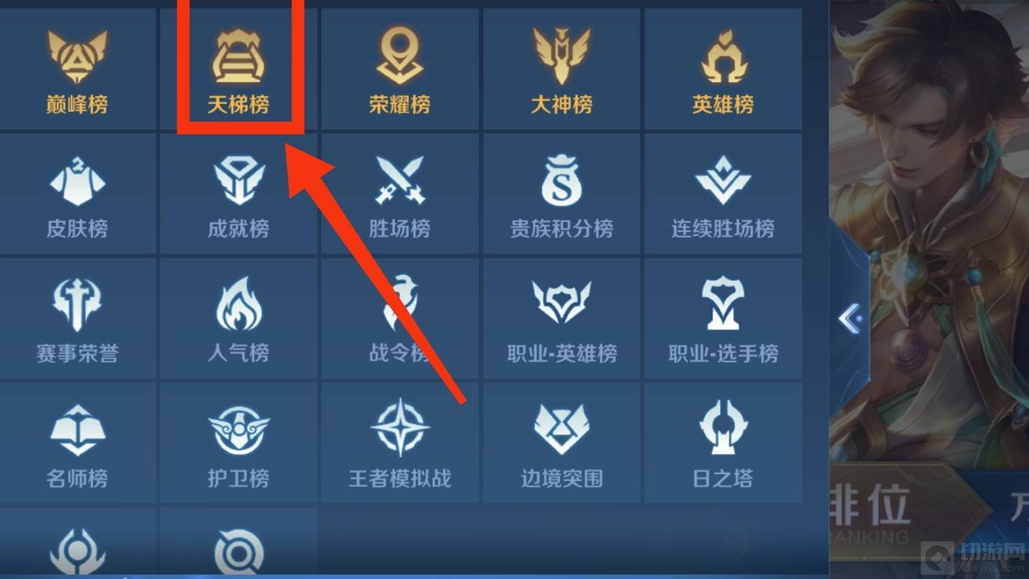 王者荣耀天梯排行榜在哪?在游戏中有部分玩家对此还不太了解。接下来让为大家介绍一下吧。