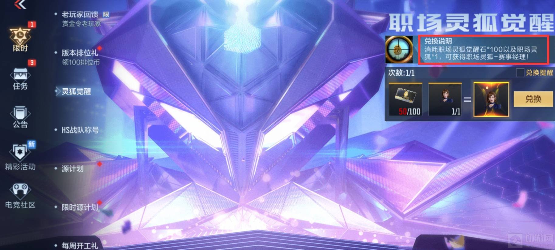 3,消耗100个职场灵狐觉醒石跟职场灵狐就可以觉醒成职场灵狐-赛事经理了。