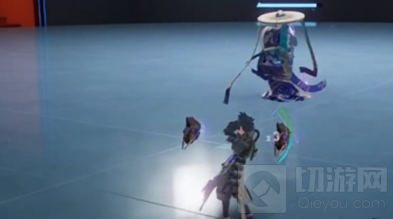 6、歌舞九天二段:歌者飞到空中,会以弧线冲向我们,我们只需要在他在弧线最右边时闪避触发幻时。