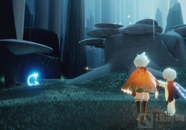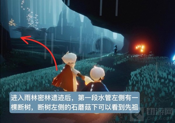 2、在边上有一朵不发光的巨型石头蘑菇,跪拜先祖就在石头蘑菇下面。