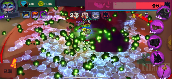 1、捕猎,朝玩家所在方位快速吐舌,若舌头命中玩家则将其拉至身边。电球:发射多个随机点球,随机移动,持续30s。