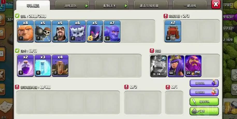 2. 雪崩流主要是以大雪怪以及地震法术作为首要的部队搭配,可以根据自己的需要搭配肉盾,在适当的时机给出狂暴,大招规避大本伤害,用手中剩余的兵种收尾即可。