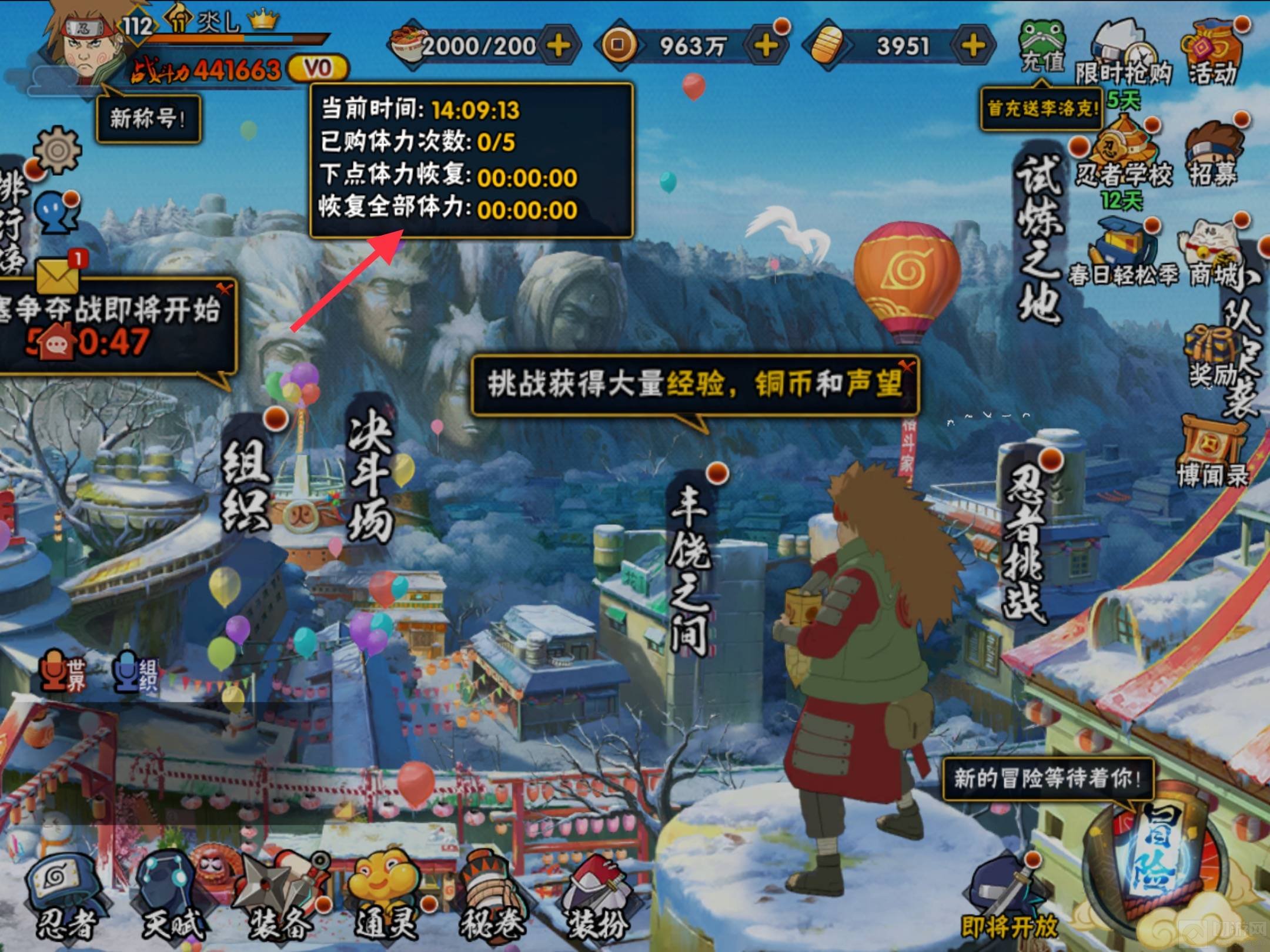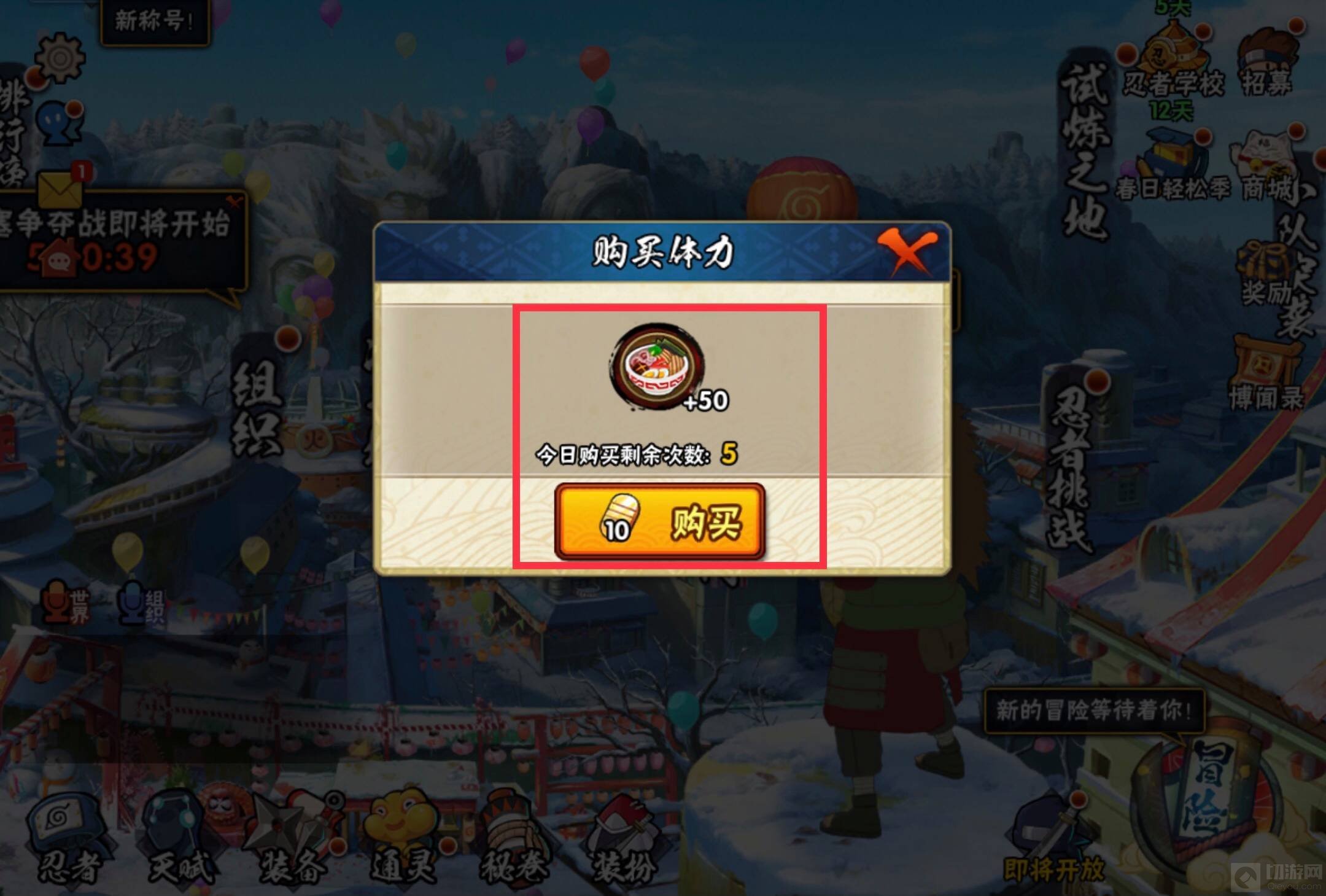 火影忍者手游体力怎么获得?在游戏中有部分玩家对此还不太了解。接下来让为大家介绍一下吧。 火影忍者手游体力获得方式 1、体力每天都可以自动的回复。 2、还可以每天够买5次体力,每次花10金币可以购买