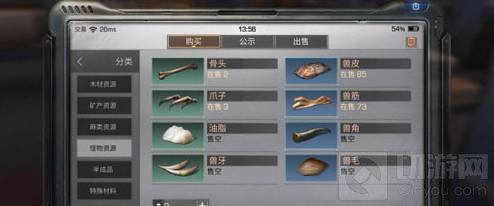 1.兽筋是非常稀有的材料,击杀怪物会有机会获得,或者购买。交易之城或101营地交易摊位怪物资源有售。