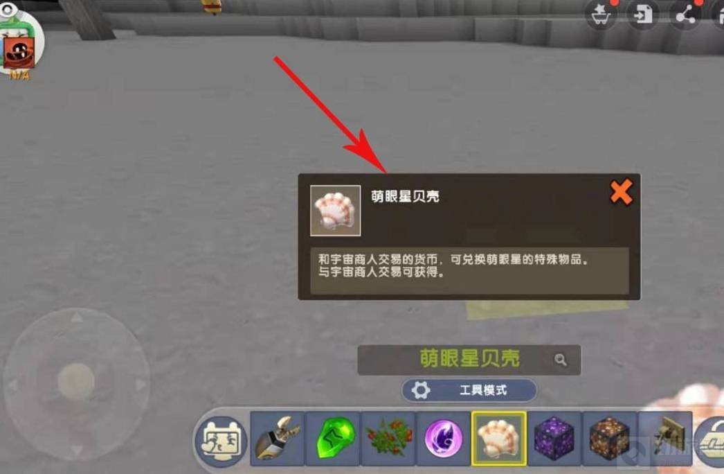 1、首先打开迷你世界游戏,在萌眼星找到宇宙商人使用萌眼星贝壳获取图纸。