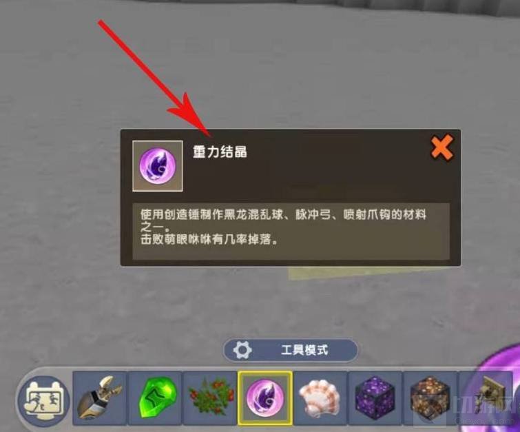 4、最后通过工匠台添加星铜石、紫荧石、重量结晶和推拉机械臂即可制作喷射钩爪。