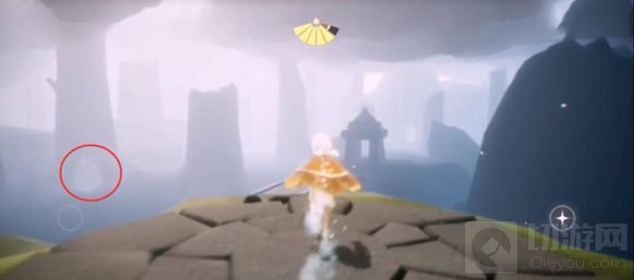 1、一路来到雨林地图小亭子这里,飞到对面石台上。