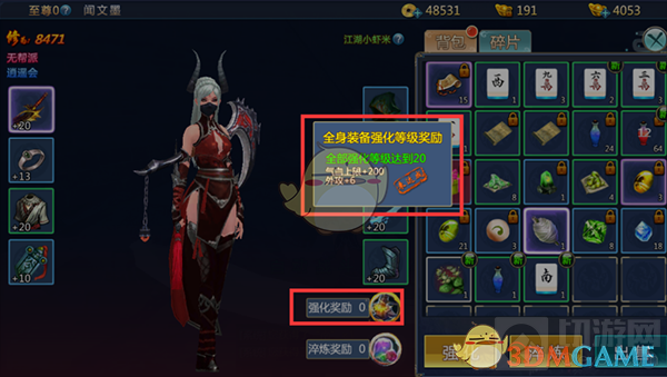 1.装备强化,游戏中可以通过强化装备来提升角色的修为(即战斗力),强化装备会消耗相应的强化石。每3个强化石可以合成一个更高级的强化石。高级强化石也可以分解为低级的强化石。