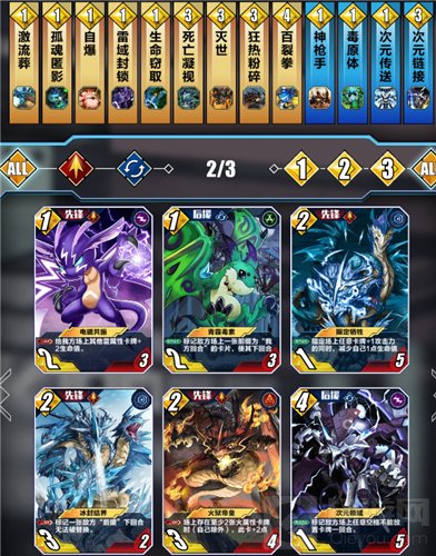 3、次元链接的用法,就是让场上的一张卡进行一次常规攻击,如果这张卡是对面的先锋,并且他面前没有任何卡,就会攻击敌方水晶。另外,再合理计算一下清障和打水晶的伤害,必要的情况下解一张卡解放一路,就能轻松取胜。