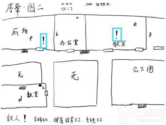 9、蓝框框起来的都是必须拿到的线索,是几个邪教徒的初始刷新点,但是数量是可能会增加的,基础是4位。全杀了之后会提供一条普通线索,一条思考线索,两把消音手枪。影音室的门左边的可以直接打开,右边的就需要攻击打开了。大概位置如下: