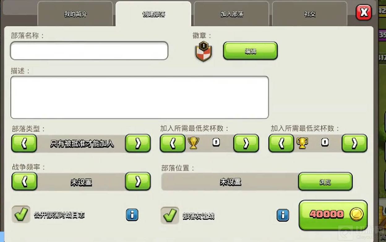 4、最后写好部落名字,设置好部落信息,最后点击确定交40000金币就可以了。