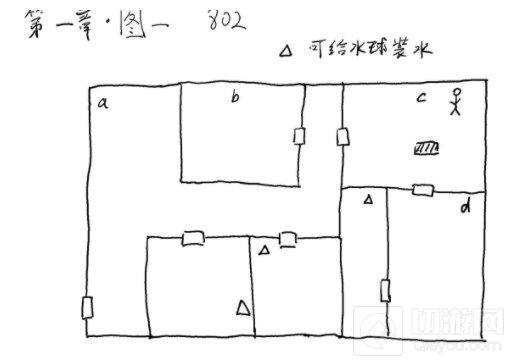 1、我们来到了公寓的8楼,左边是801,右边是802,行动顺序是:马原,克里斯,沈利邦,耿瑞,张蓝,曹菁荧。接下去我会依照我的手绘地图来进行讲解。因为其实第一章的物品比较稀疏比较少,所以我觉得可以仔仔细细地全拿了,可以先去802,从a点过一个侦查拿到报纸后去找金莲对话就解锁9楼了。