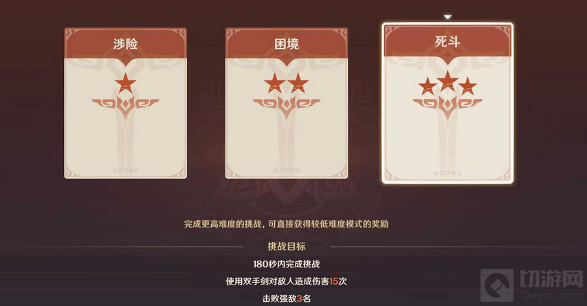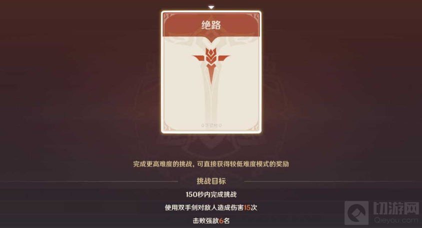 绝路难度:丘丘岩盔王、火斧丘丘暴徒和岩盾丘丘暴徒的组合。练度不高的双手剑角色不太容易输出,可以使用自己其他强力主C使用。