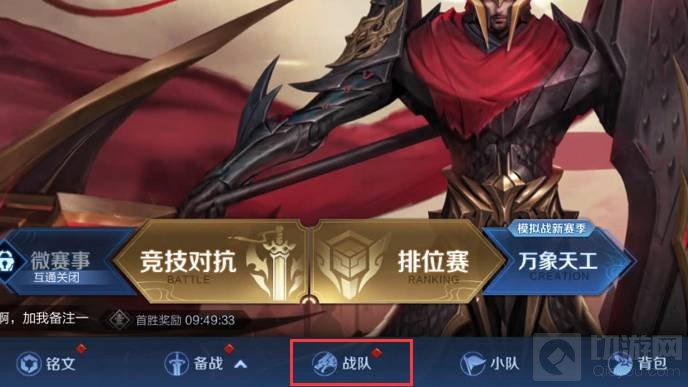 1、先进入到游戏界面中,选择点击下方的战队选项。
