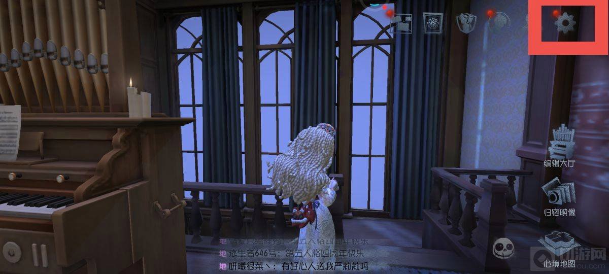 1.先打开第五人格,点击右上角设置。