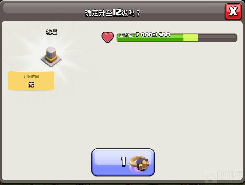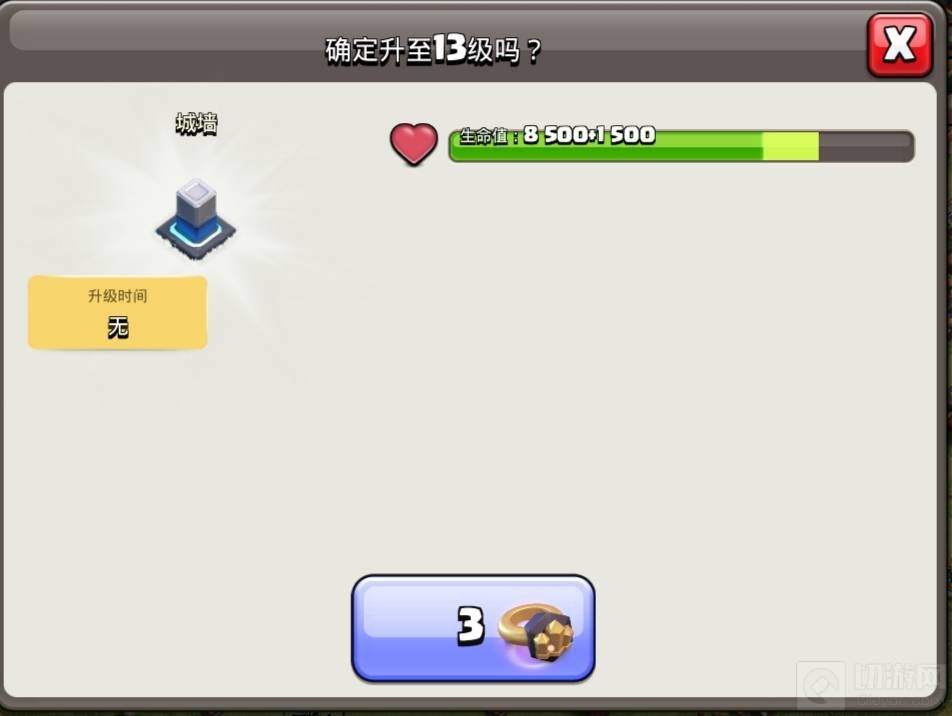 1、在家乡的一个戒指相当于一百万金币,而10级城墙以下的墙都是不需要一百万金币的,并且11级以上的墙也是整百万数的,即11级以上的墙升级费用几百万就用几个戒指。