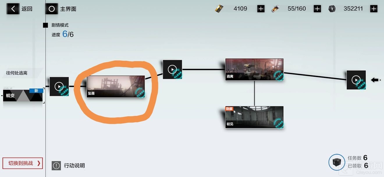 首先进入露西亚【蜕变】间章里的《坠落》关卡