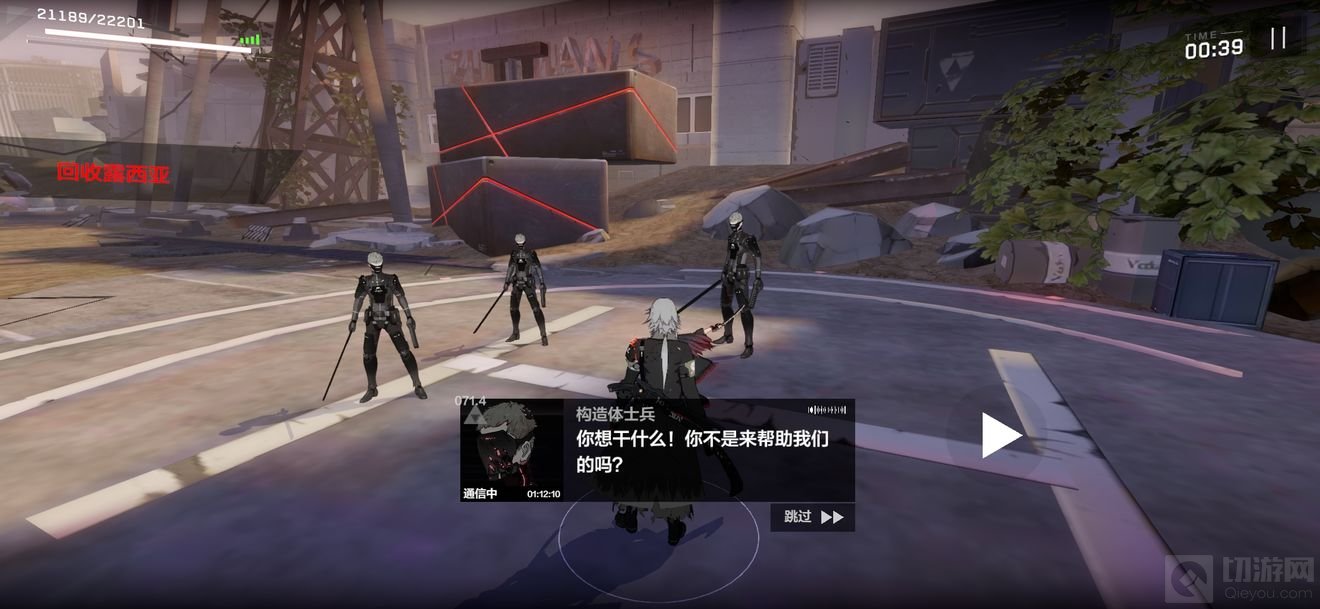 进去之后可以看到三名感染体正在攻击三名构造体,看完剧情对话之后,直接把感染体全部干掉,记住,要在构造体被干掉之前干掉所有感染体,记住,构造体不能少一个哟(和构造体的对话,对不对都无所谓)