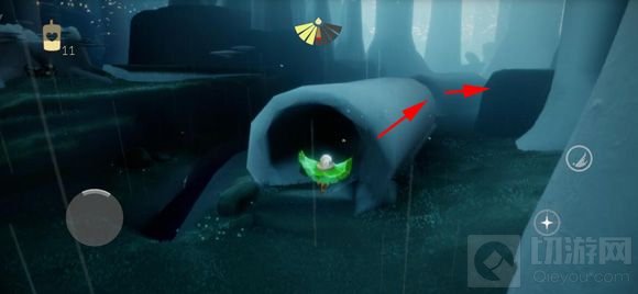 3、进入树洞,左拐直走,在前方石灯笼处停一下;