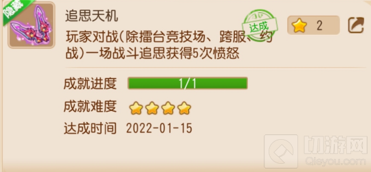成就内容:玩家对战(除擂台竞技场、跨服、约战)一场战斗追思获得5次愤怒