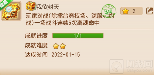 成就内容:玩家对战(除擂台竞技场、跨服、约战)一场战斗连续5次离魂命中