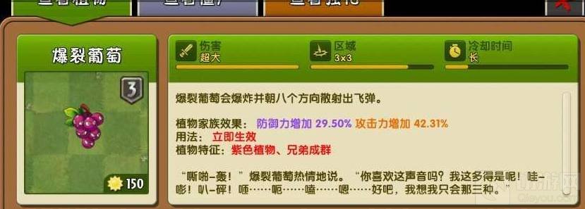 5、使用爆裂葡萄:可以与僵尸同归于尽。