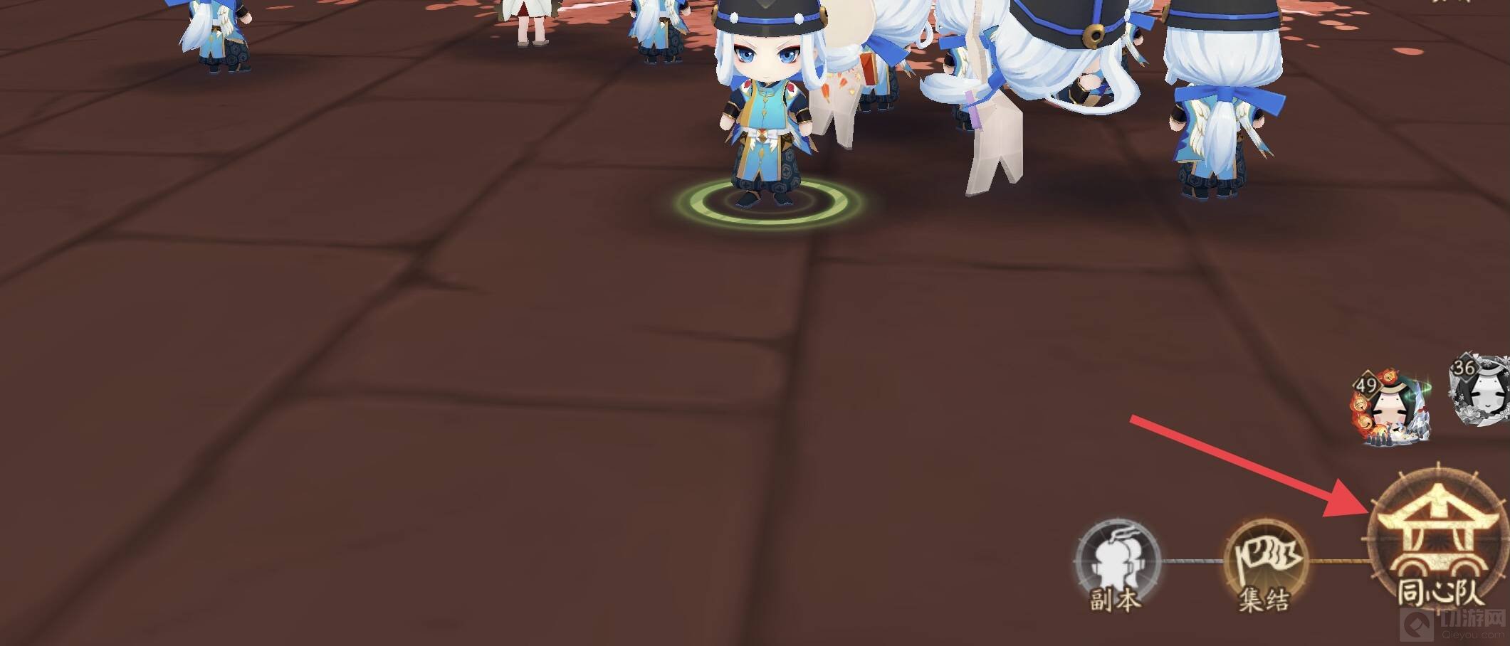 3、然后会进入到公共区域,在该界面的右下方就可看见同心队。