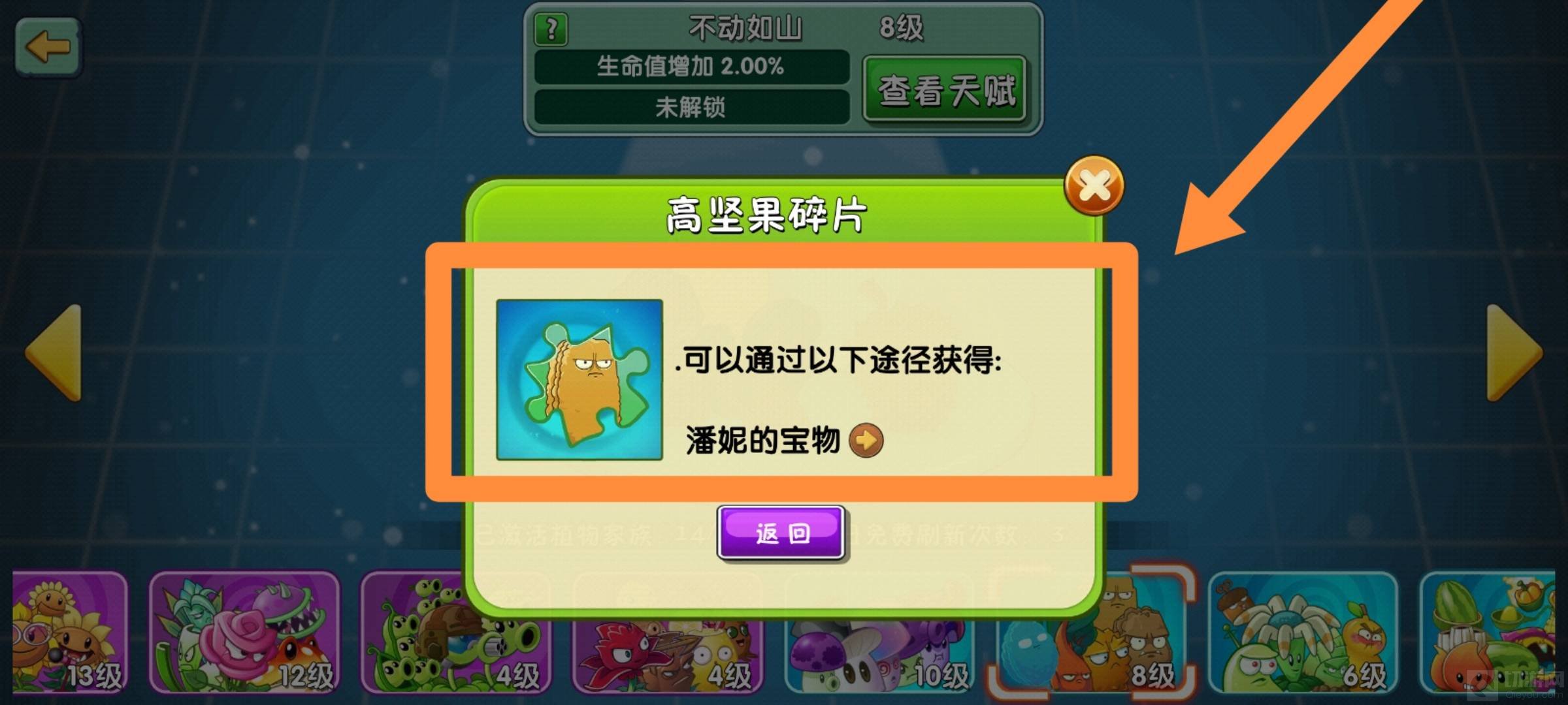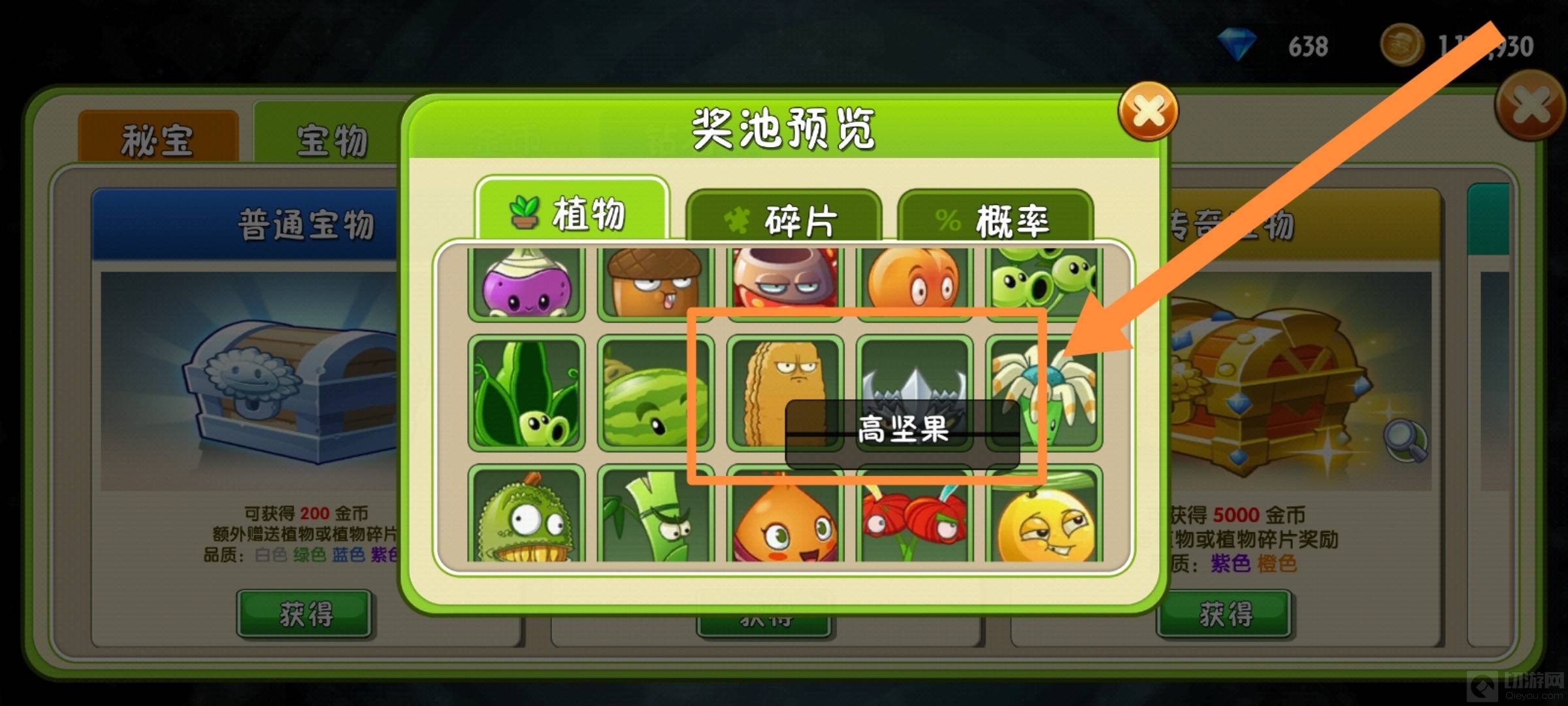 1、想要获得高坚果,可以通过潘妮的宝物获得高坚果碎片,集齐足够的碎片就可以获得高坚果了。